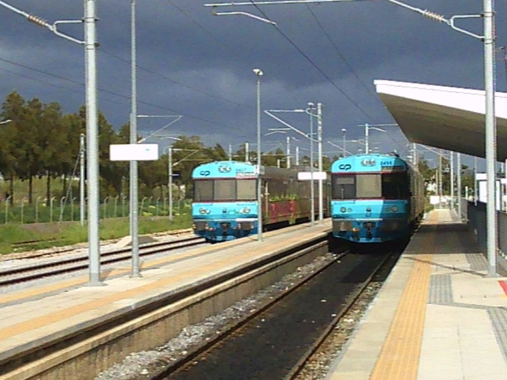 track with passing places. It is electrified between Lisbon, Tunes